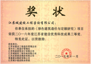 二O一六年度江蘇省建設(shè)優(yōu)秀科技成果三等獎
